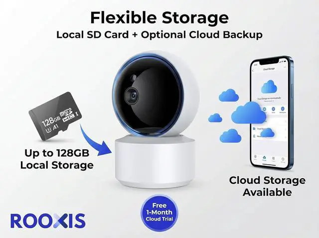 Easy WiFi Setup and Voice Control - Connect to 2.4GHz WiFi in minutes with the free Smart Life or Tuya app (iOS and Android). Compatible with Amazon Alexa and Google Home for hands-free voice commands. Store recordings on microSD card (up to 128GB) or optional cloud storage.