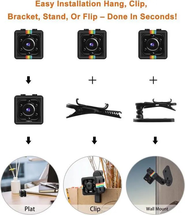 Crystal-Clear 1080P Video & 12MP Photos Never miss a moment! This mini camera captures every detail with sharp video and vivid photos, perfect for keeping your home or adventures safe.