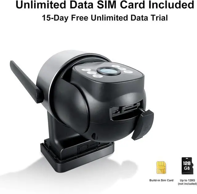 Includes SIM Card & 15-Day Free Data TrialWOOMO 4G cellular security camera comes with a pre-installed SIM card that includes a 15-day unlimited data trial. After the trial, you can easily renew your plan starting at $17.99/month. Stay connected and view your property anytime even in places without WiFi like farms, RVs, cabins, or construction sites. (Note: The data plan is only available in the U.S., and this camera cannot connect to WiFi networks.)
