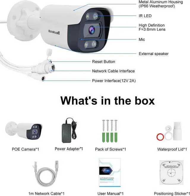 Powered Over Ethernet &IP66 WeatherproofJideTech PoE camera 4k outdoor feature an all-metal housing with IP66-rated dustproof and waterproof capabilities, it withstands outdoor weather challenges with steadfast durability. Integrated PoE technology enables installation via a single network cable, simultaneously addressing power supply and networke requirements. This significantly simplifies cabling projects, delivering substantial savings in both installation costs and time.