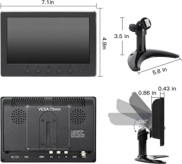 Widely ApplicationOSCY 7 inch small computer monitor can be used Computer sub-screen; This portable Screen work with video game consoles , such as X-BOX,PS4, NS ; Monitor for a back-up camera on vehicle or RV or as car /pipeline inspection tool.