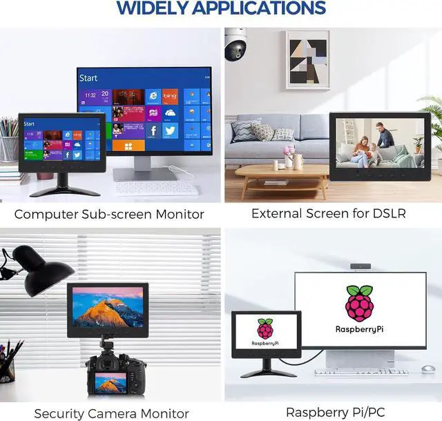 Various input interfacesThe monitor supports HDMI,VGA,BNC,USB and AV port. Basically suitable for most situations. This monitor for Raspberry Pi is working perfect with Raspberry Pi 4, 3, 2 and Raspberry Pi 1 B B+.This monitor also works perfectly with, Computer, Car DVD, VCD, DSLR, TV-Box, satellite receiver, and other video equipment, also be used as a monitor for FPV/CCTV system/rear view camera.