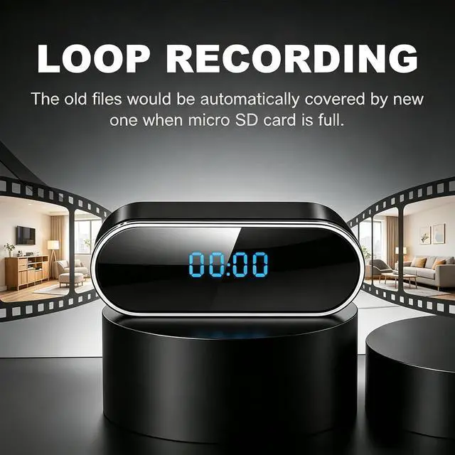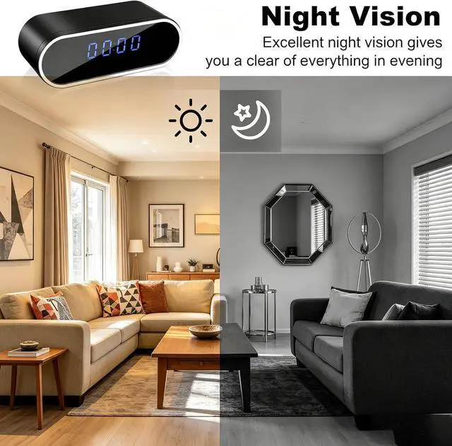 Multi-Function Clock Design for Covert Monitoring This hidden camera features an everyday clock appearance that displays the time accurately while concealing a high-definition recording lens. Its ordinary look blends seamlessly into any room, making it an ideal nanny cam for indoor surveillance in homes or offices. (No audio recording)