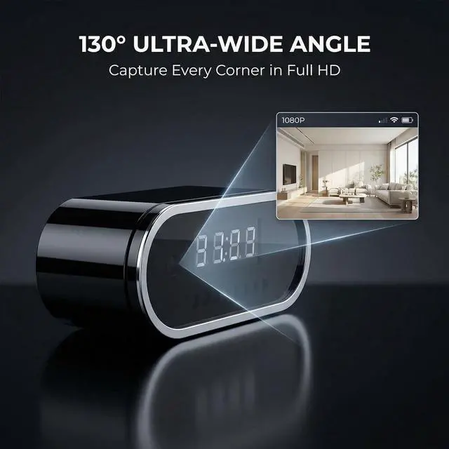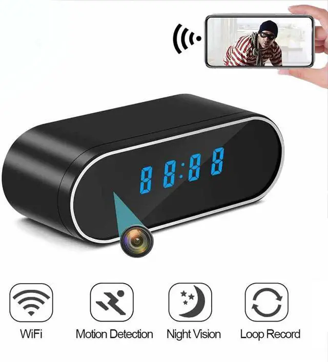 Clock Camera: Designed clock appearance, this indoor camera seamlessly blends into your home decor. With the ability to switch between 12/24 hour formats, the clock camera is less noticeable to guests.