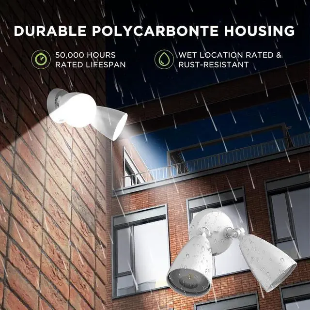 Twin-Head LED Flood Light - with (4) 12W PAR30 Bulbs (Each 1080 Lumens 4000k), Ideal for walkways, patios, and play areas creating an inviting exterior space as well as providing safety and security.