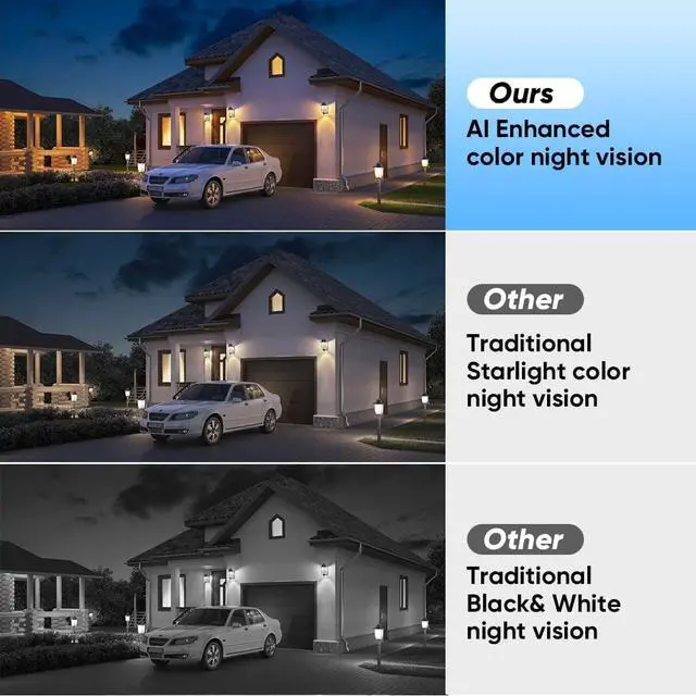 [ULTRA-HD P VIDEO COLOR NIGHT VISION] Capture sharp, crystal-clear P video in 2K resolution with detail day or night. Advanced color night vision vers full-color images in low-light conditions, so you never miss important activity even in complete darkness.