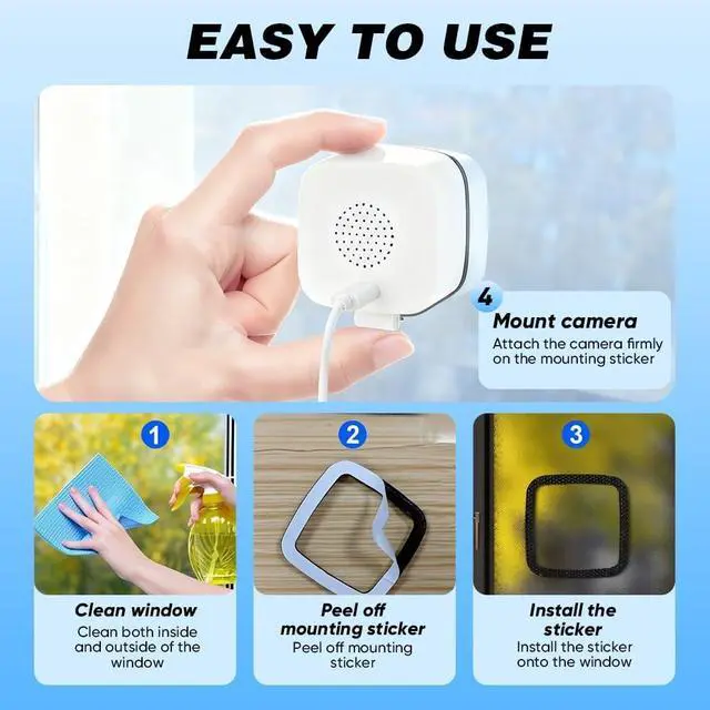 [EASY SETUP TOOL-FREE INSTALLATION] No complex wiring or drilling required. Simple plug-and-play setup with a peel-and-stick mount and Bluetooth connection gets your camera up and running in minutes. Perfect for renters, apartments, or DIY home securityno professional help needed.