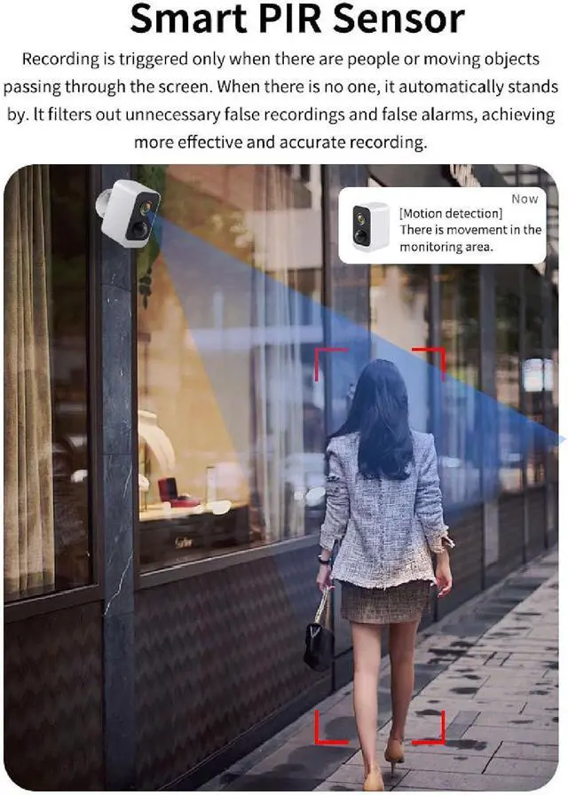 AI Motion Detection With AI motion detection, this camera identifies movement within 2 seconds and sends smartphone alerts. Define specific monitoring zones in the app to minimize false alarms while protecting key areas.