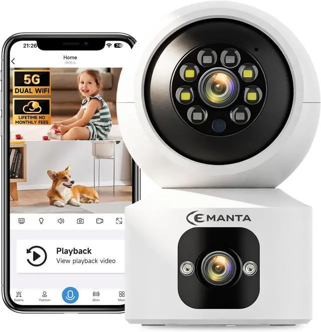 Dual-Band WiFi 6 Indoor Camera with Faster, Stronger & More Stable Connection: This indoor camera wireless supports advanced WiFi 6 along with 2.4GHz and 5GHz dual-band WiFi, delivering faster speeds, stronger signal penetration, and more stable connections. Whether you're at home, at work, or traveling, enjoy ultra-smooth HD streaming with less lag and no interruptions