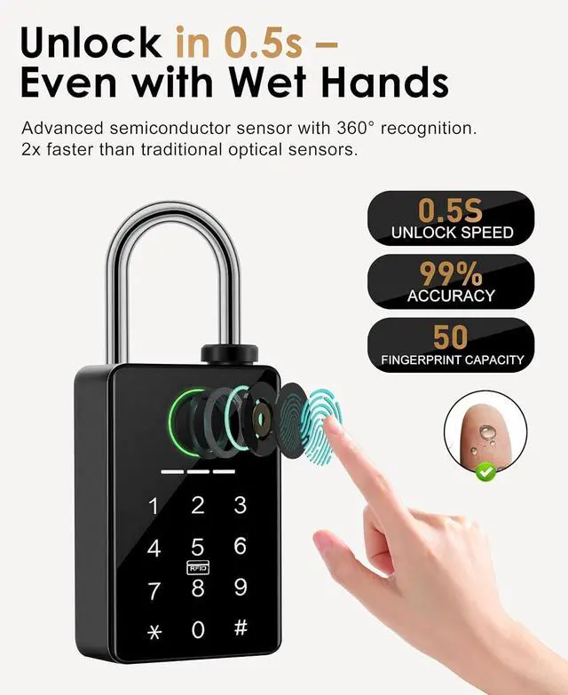 [SMART ACCESS MANAGEMENT & LOGS] Monitor your security from anywhere using the Tuya App. View real-time access logs, manage up to 50 fingerprints, and share temporary or recurring access with rental property managers, pet sitters, or maintenance staff without needing to be physically present.