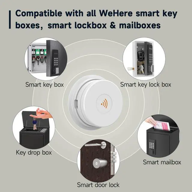Enable Remote Unlock & Password Management Turn your WeHere smart key box from Bluetooth-only into Wi-Fi control, allowing you to unlock remotely and add, edit, or delete passcodes in the WeHere app.