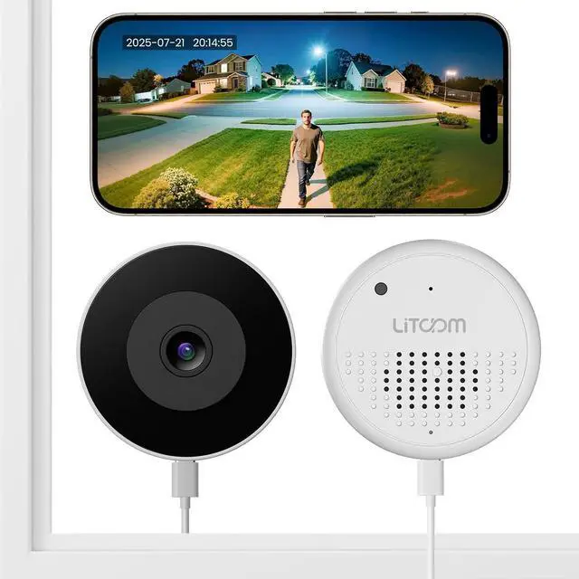 [Clear 2K Resolution & Anti-glare] This litokam window camera features an advanced 3MP sensor, delivering ultra-high-definition 2K resolution to ensure you can capture every detail outside your window with crystal-clear clarity. Its unique anti-glare design is specifically optimized for window use, allowing you to monitor your front door, driveway, or backyard effortlessly without worrying about glass reflections.