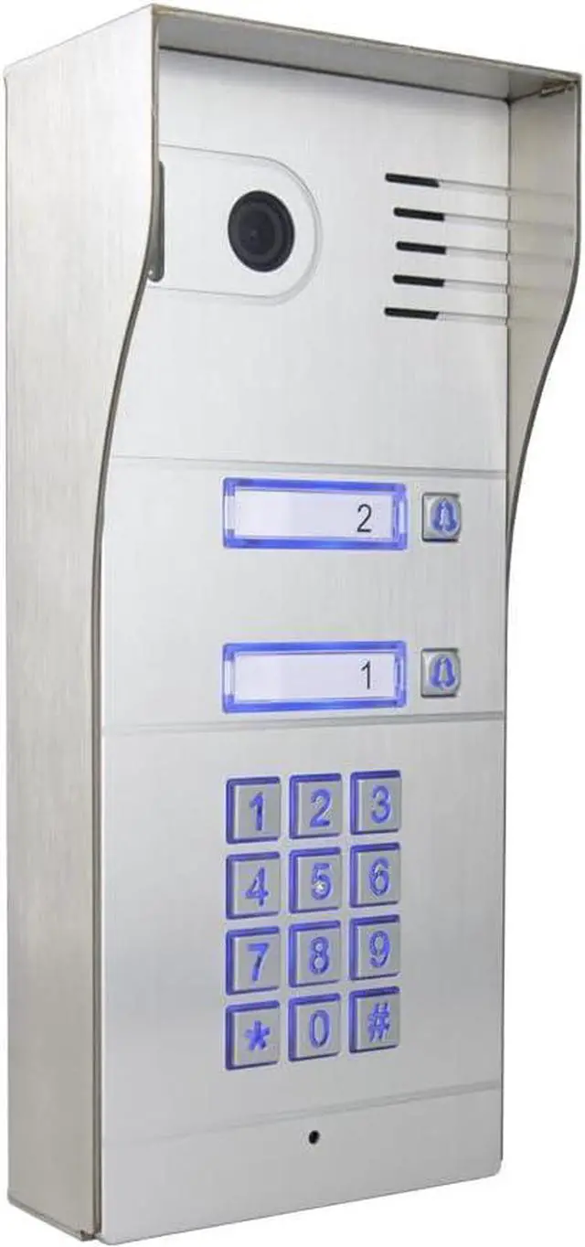 [COST-SAVING]- No wiring for this apartment building intercom system is necessary, only three wires: one power line, one RJ45 internet cable and one unlocking wire. Save lots of installation labor cost. Premium Brushed Aluminum faceplate for durability. All Stainless Steel Back Box, Weatherproof IP65 rated construction. Always-on blue backlight enables easy user operation in low light conditions. Requires 12VDC 1A Power (adapter included) or can be powered through a wired Ethernet connection using the integrated PoE. 2 years manufacturers warranty.