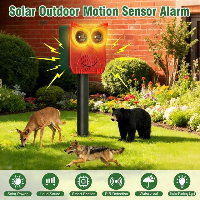 New Version Upgrade in 2026:This outdoor motion sensor alarm features state of the art motion sensor alarm technology which creates a powerful strobe light,accompanied at the same time by an alarm sound. Motion sensor alarm outdoor scare them away from your house, garden, yard and stop animals from ravaging your favorite plants