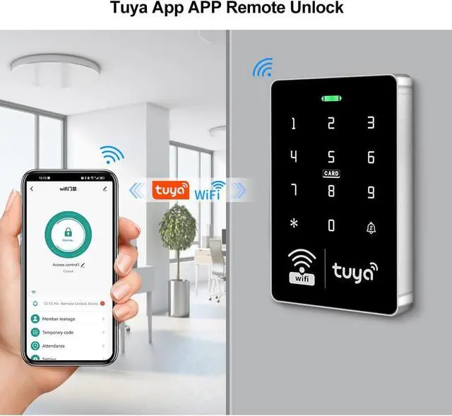 Working with 125KHz and 13.56MHz dual frequency, can set management card. All programming can be done on the keypad and Tuya APP, don't need any software.