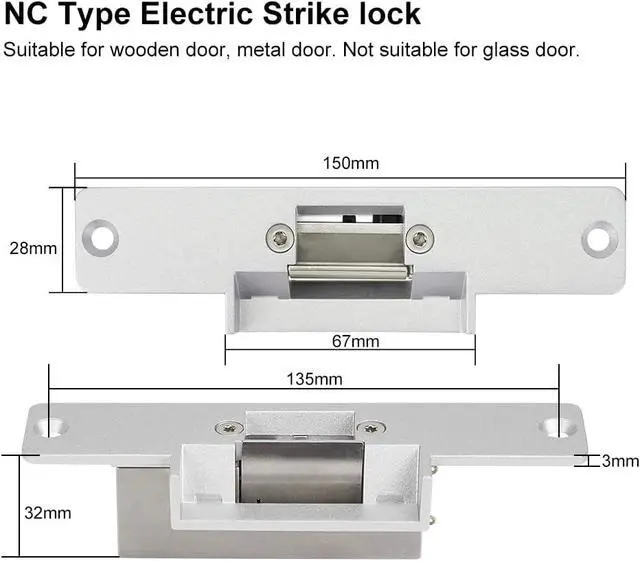 NC type (fail safe type) Electric strike lock, the door will locked when power turn on, unlocked when power turn off. Very suitable for wooden door, metal door.
