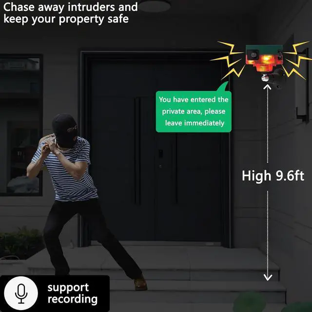 360° motion detection: 3 motion sensors, easily to scare away the intruders no matter which direction they try to close.Keep your property secure day and night.