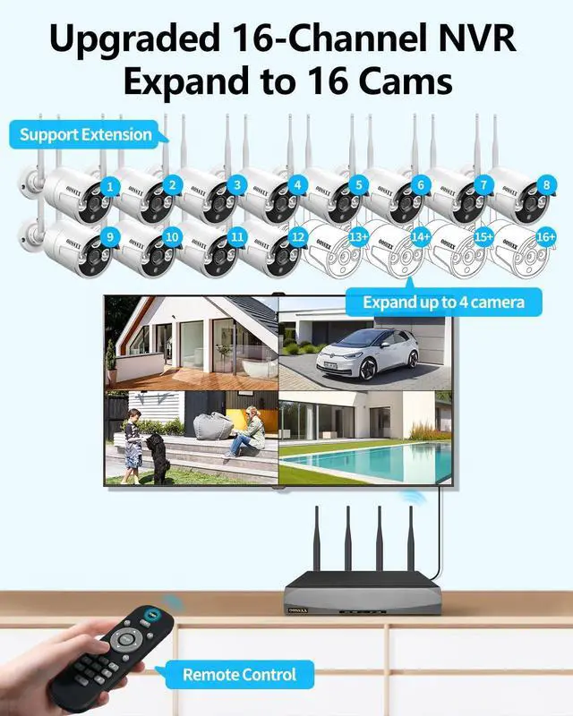 {Dual Antennas to Enhance WiFi} The wireless signal is very important for this system. If the wireless signal is weak, the video will be blurred/stalled/disappeared, so we will update all cameras to real dual antennas. The wireless distance will be updated by about 55%, and the video will be even better. Smooth and clear.