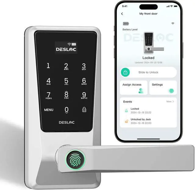 App Control for Remote Code Management: Use the DESLOC app to check lock status, manage passcodes, or review activity history, offering convenient monitoring for bedrooms, home entry points, or rental properties