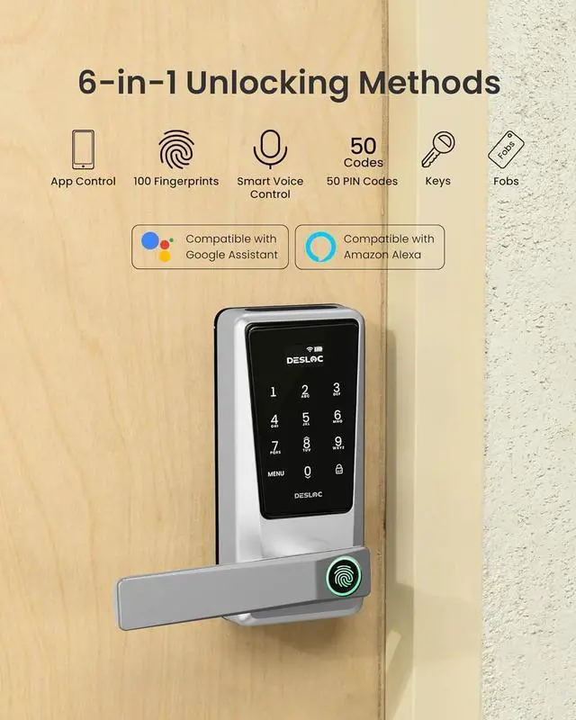 6 Unlock Options for Flexible Keyless Entry: Fingerprint, keypad passcodes, app operation, voice and physical keys and fobs provide versatile access control for family members, guests, or shared spaces. Ideal for homes, rentals, and small offices