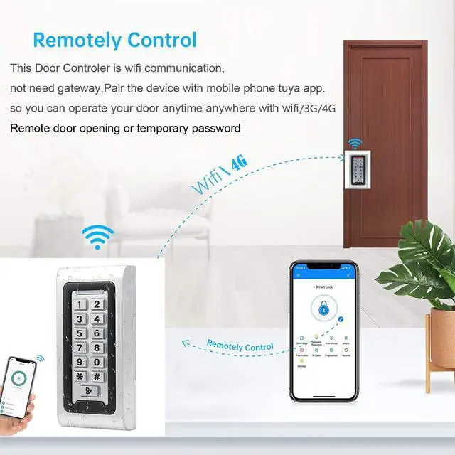 Multiple Access Modes:Android Smartphone NFC Function(Not Support IOS) ,Simple Setup for UseConnect the access controller to the power supply and the electric lock, turn on wireless pairing, add the keypad to the TUYA mobile APP, you can remotely manage the access control system. Attention: The password keypad working on 2.4 GHz network, when adding keypad, make sure the keypad must be connected to the same Wi-Fi network as your smartphone.
