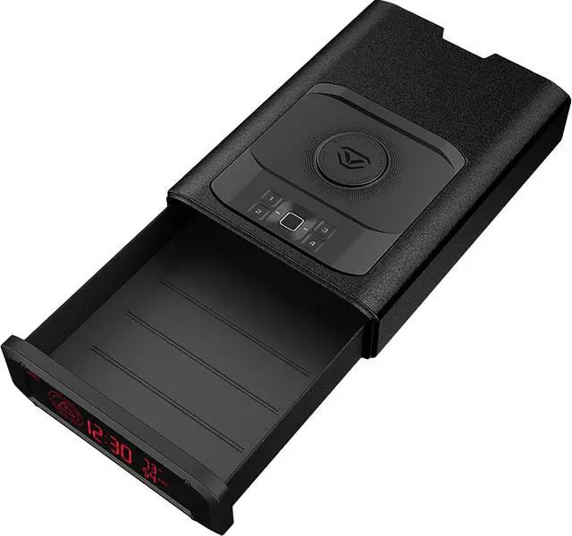 Next Gen Smart Safe: Upgraded with a top-mounted wireless charger, USB/USB-C ports, and a sleek, customizable LED display showing time, temperature, and humidity