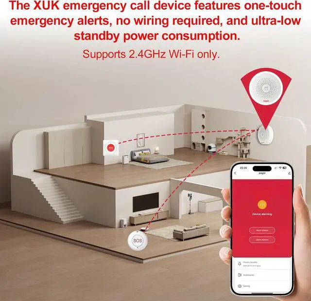 • Superior Signal PenetrationThe XUK Elderly Call Device boasts an effective range of up to 500 feet/150 meters, with Wi-Fi and component signals capab
