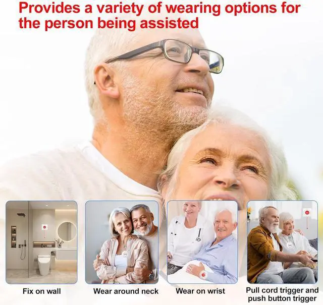 Multi-scenario UsageThis wireless call system includes wristwatch, wall-mounted pull-out, and circular neck-worn call buttons, suitable for homes, hospitals, clinics, nursing homes, and other settings to accommodate diverse usage scenarios. Designed to meet everyone's needs.
