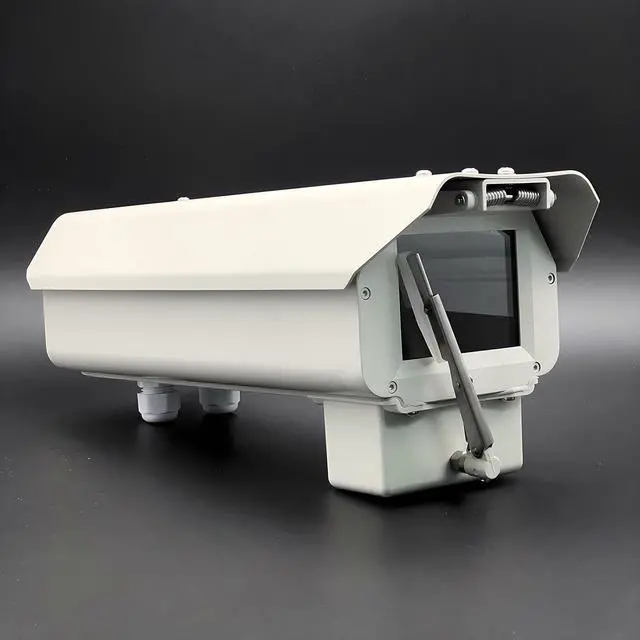 12 Inch size enclosure for CCTV security cameras, with heater/ fan/ double layer sunshade/ 12V DC wiper installed