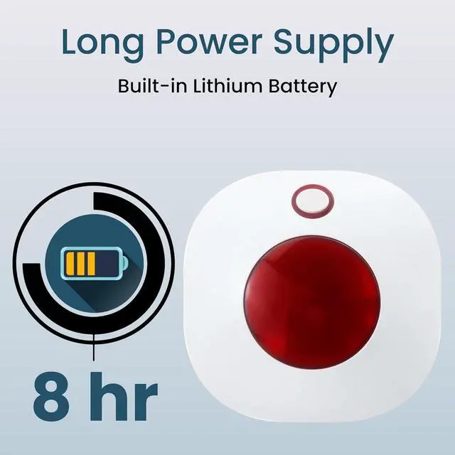 8 Hour Back-up Battery: The OSI Wireless Strobe Siren Gen 2 features an 8-hour backup battery, guaranteeing uninterrupted protection during power outages. This ensures continuous operation without manual intervention, offering peace of mind to homeowners even in prolonged outage situations.