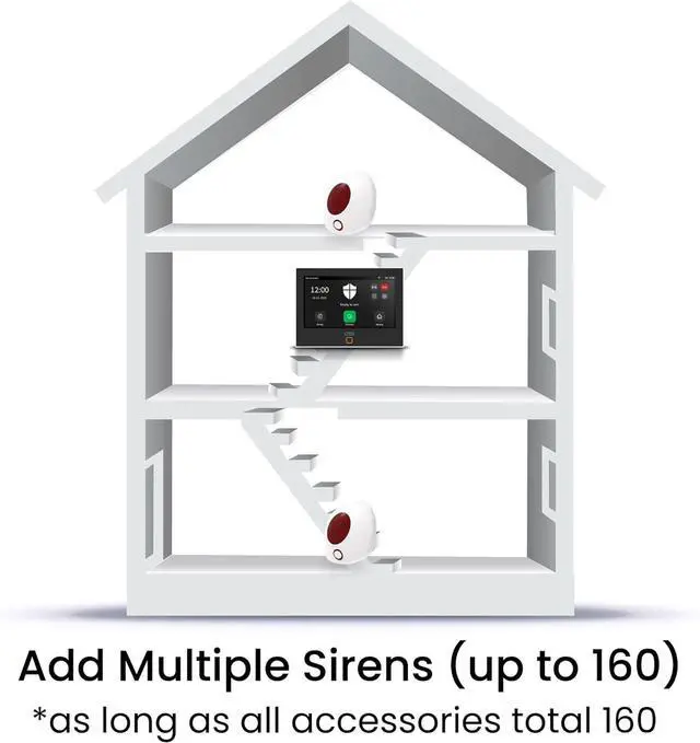 Connect Multiple Sirens!: The system allows for a maximum of 160 accessories to be connected, making it ideal for expansive properties. This setup accommodates the placement of sirens at opposite ends of the home ensuring comprehensive coverage and alerting capabilities in the event of an alarm trigger. Users can mix and match these Wireless Sirens as well as Contact Sensors and Motion Sensors as needed, as long as the total does not exceed 160 pieces.