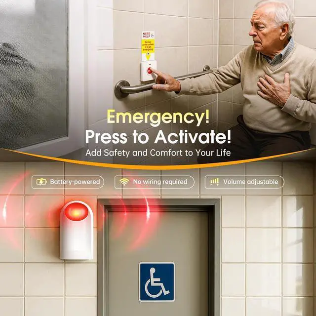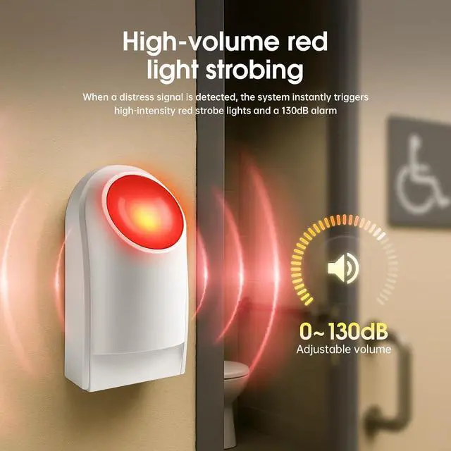 Adjustable Alarm Volume up to 130dB: The wireless call button system features a loud alarm with volume adjustable up to 130dB. Use the dial on the back of the emergency siren to easily set the sound level to match your environment and needs.