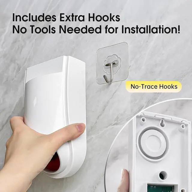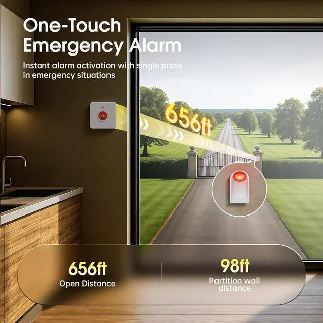 What You Get: Package includes: 1 sound & light emergency siren host, 2 emergency call buttons, 1 user manual, 2 mounting screws, and 1 portable hanging hook. All you need for a reliable ring panic button system.