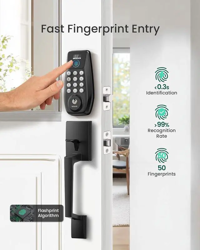 - Unlock with fingerprint, passcode, or physical key for ultimate convenience and security. With FlashPrint Algorithm, the door lock recognizes your fingerprints in under 0.3 seconds, storing up to 50 fingerprints. Trusted by millions of users
