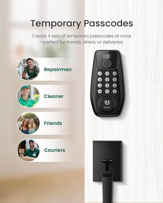 : Install the DESLOC front door lock in minutes with just a screwdriver and automatic door swing direction detection. The interior lock back cover with adhesive allows for hands-free setup. DESLOC offers a 1-year product warranty and after-sales service. Contact us via hotline (Mon-Fri, 9am-5pm EST) or 24/7 email support