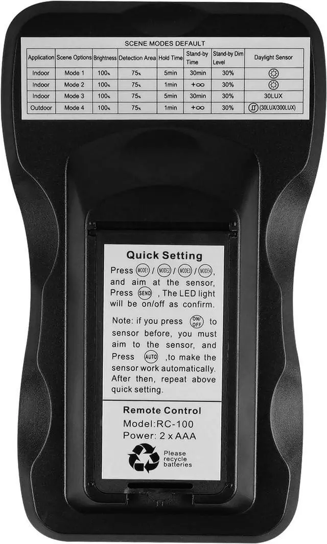 12-24Vdc input voltage for flexible installation 3-pin contact configuration for reliable connections 600W capacity suitable for various lighting applications 40Ft detection range for wide coverage 0-10V bi-level dimming control for energy efficiency Remote capability for easy adjustments Battery Operated( Not included)