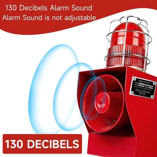 130dB Loud horn: The siren has a built-in speaker with a high-power output of 45Watts, which can produce a loud and clear sound that can be heard from a long distance. The siren sounds up to 130 decibelsSound is not adjustable, alarm range of 100-150meter