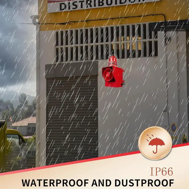 Outdoor alarm siren: The shell is made of waterproof and dustproof steel plate. The protection level is IP66, can work normally in rainy, snowy, and hot environments.