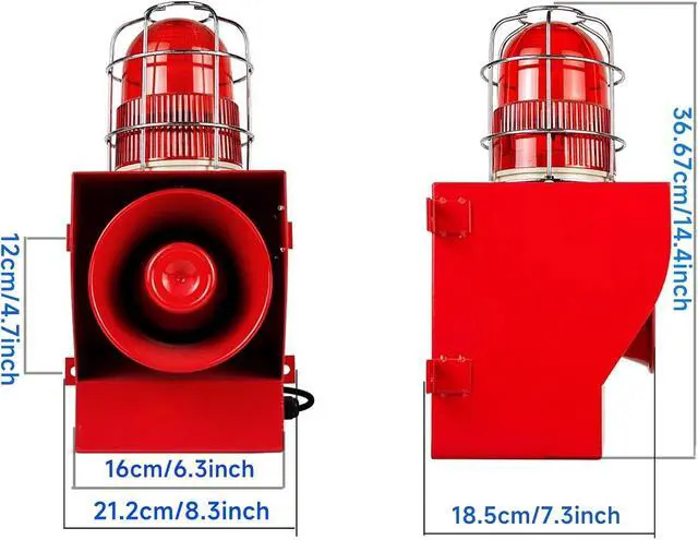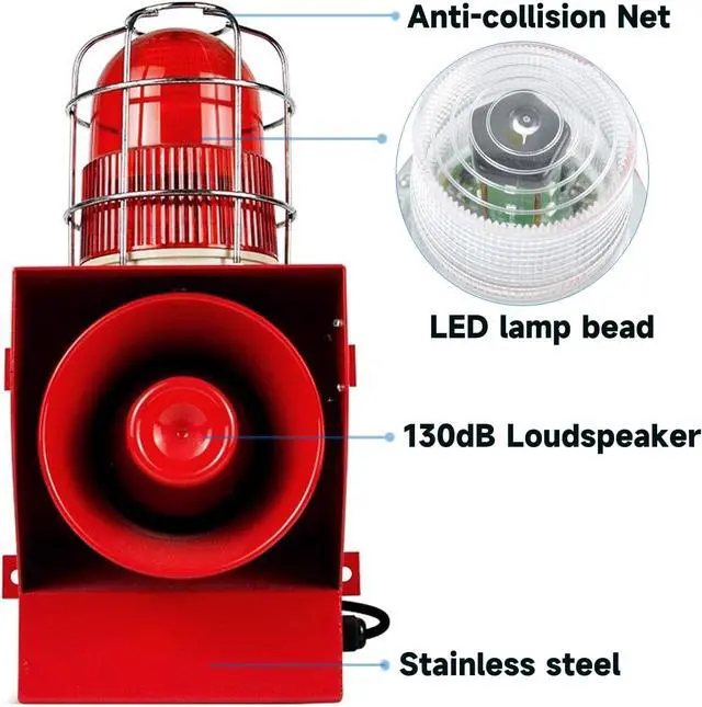 Material: Sound and light integrated siren, made of cold-rolled steel, high-quality ABS plastic and metal crash net. The siren is easy to install and can be used in a variety of applications, including port, dock, factory, and more.