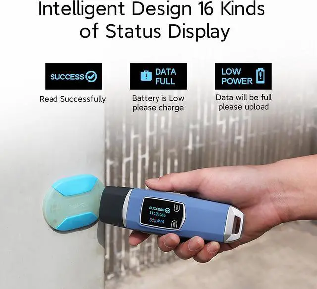 Multifunction Patrol Reader with Flashlight. Built-in flashlight supports safe night patrol. The OLED screen displays time, temperature, battery level, and reading status in real time.