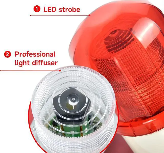 Flashing LightThe alarm lamp uses LED strobe light, and the blinking mode is not adjustable. With light diffuser, default red lampshade, if you need other colors please contact us.