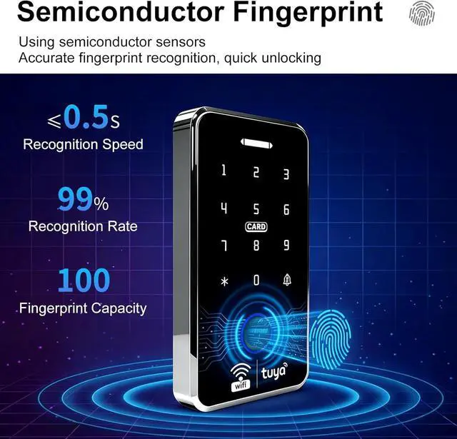 [Multiple Users, Multiple Access Methods] Supports 1000 users/100 fingerprints, with multiple unlocking methods including fingerprint, card swipe, password, graffiti app, and remote control. Users can add and delete cards, and manage users wirelessly via the Tuya app on their smartphones. This makes user management more convenient and faster.