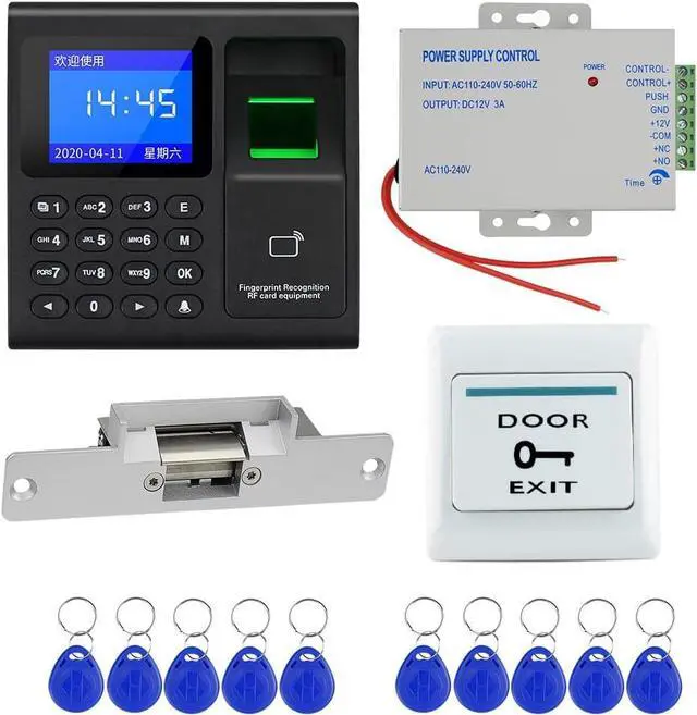 This complete employee time and attendance system includes a 1.8-inch HD display, an electric strike lock, a power controller, a door-release button, and 10 ID cardsmaking it ready for immediate use right out of the box. Integrating both access control and time & attendance functions, it is suitable for a wide variety of office environments.
