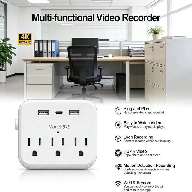 4K Ultra HD Hidden Monitoring with Perfect Disguise This discreet spy camera features 4K ultra-clear resolution, seamlessly built into a standard wall outlet. The lens is virtually invisible to the naked eye, operating with no light or sound. Ideal as a nanny cam or for home security, it provides crystal-clear, covert monitoring day and night.