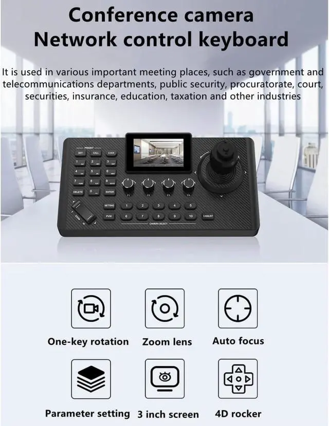 4D Precise Joystick with 3D Knobs and Ergonomic Zoom Button: Camera parameters control such as white balance, exposure, focus and zoom etc