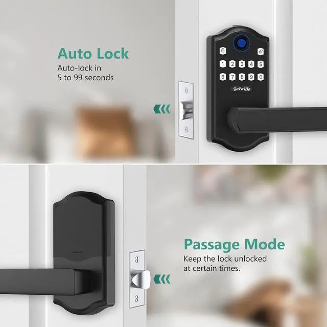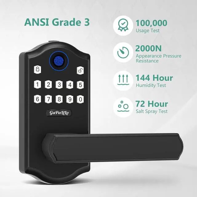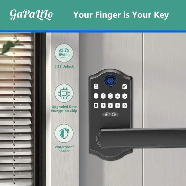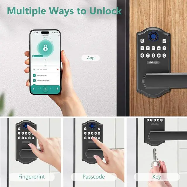 4-IN-1 KEYLESS ENTRY: Unlock effortlessly via fingerprint (0.3s fast recognition), Bluetooth APP control (within 10m), PIN code, or mechanical key. Never worry about lost keys again.