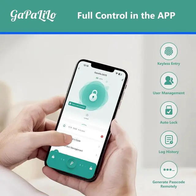 APP SMART MANAGEMENT: Store up to 50 user profiles via the mobile app; manage access permissions, set 5-60s auto-lock timing, and view real-time unlock history for family monitoring.