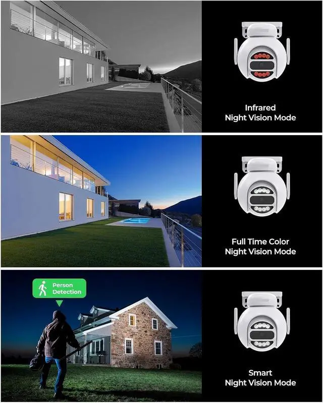 Intelligent alerts and deterrence: When a human figure intrusion is detected, it automatically triggers strong light flashing + voice warning, and simultaneously pushes motion detection alerts to the mobile phone. Effectively deterring illegal behavior and notifying users in real time.