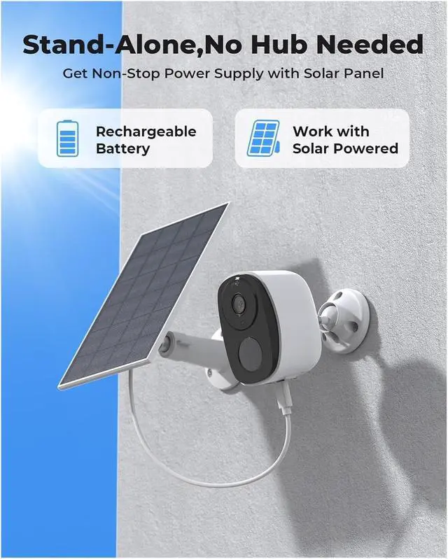 Flexible Power Supply Options: Equipped with a built-in 5200mAh rechargeable battery, it supports repeated charging. It can also be powered by a 5W solar panel (requires an additional component), allowing for freedom in installation locations without being bound by wires. The low-power design, combined with motion-triggered wake-up (0.8-second quick response), effectively extends battery life, eliminating the need for frequent charging and making use more convenient.