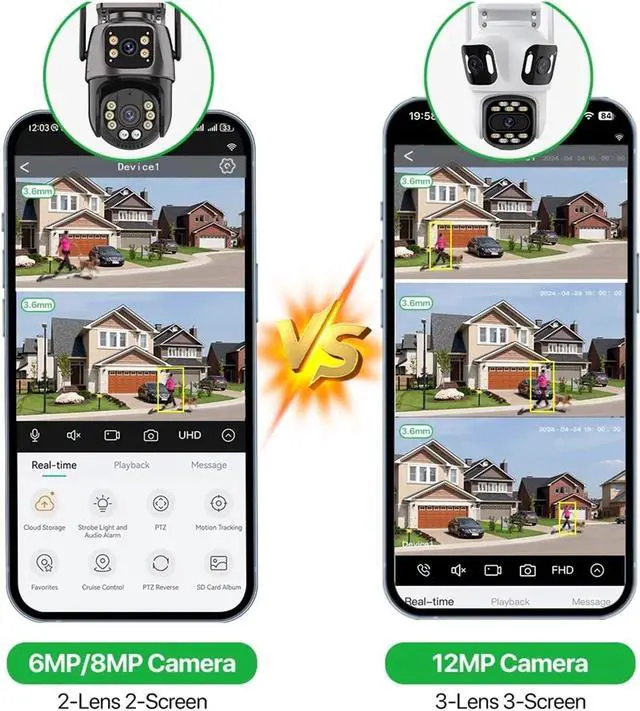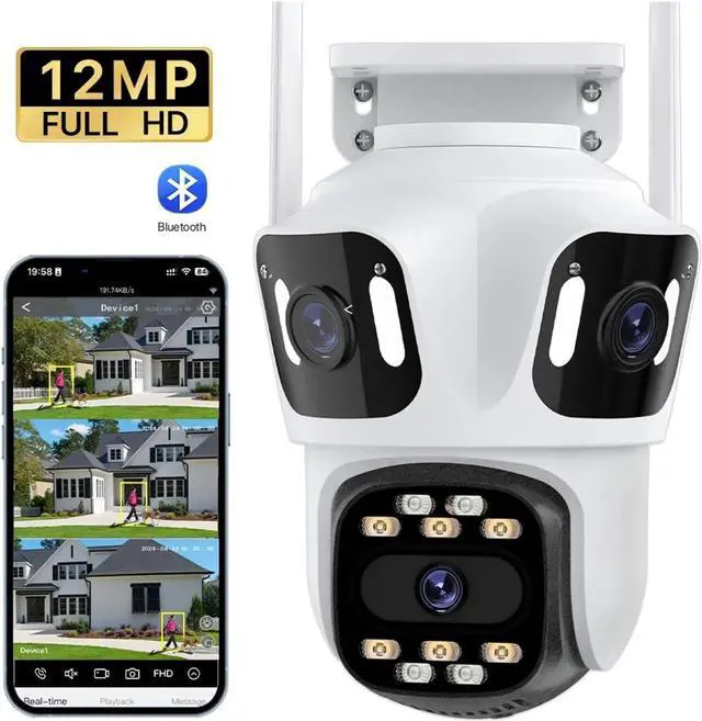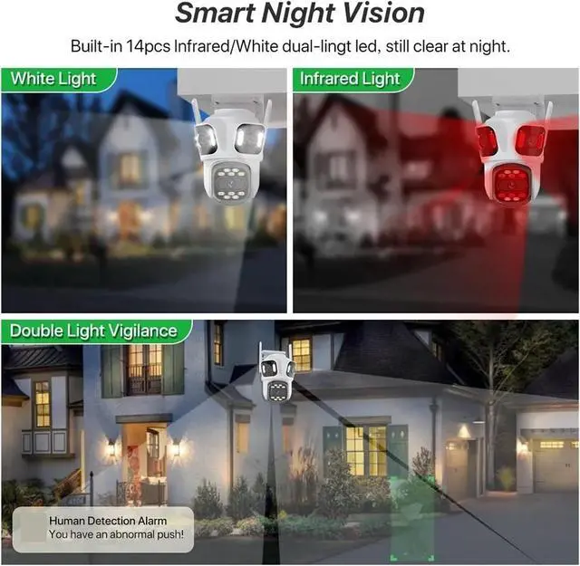 AI Human Detection + Intelligent Alarm: Equipped with AI human detection technology. The 12MP triple-lens supports three-screen detection. The bottom lens of the dual-lens version can detect human activities. Once an abnormal motion is detected, an alarm is triggered immediately and a reminder is sent, allowing you to quickly know the abnormal situation and take preventive measures in advance.